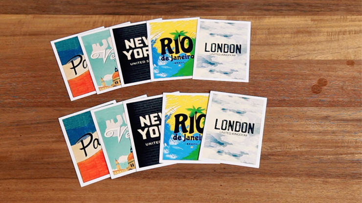In the first phase, the spectator chooses their favorite city and separates the corresponding postcard. The illusionist asks them to imagine themselves in that city and then proceeds to describe in detail the city they are thinking of.
