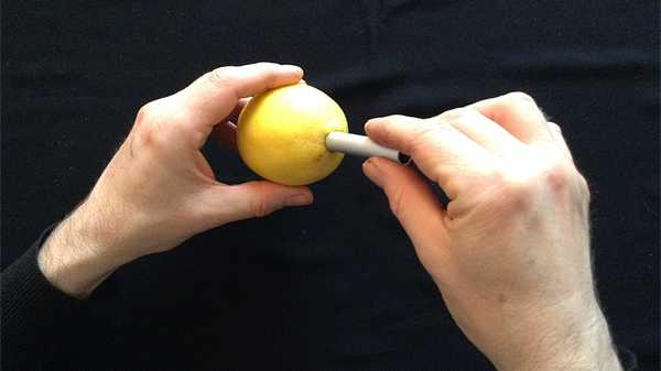 All this, though, was before Nourdine created CITRUS: The Next Generation, a completely reliable and exceptionally practical gimmick for magicians of all ability levels. The gimmick can be reused ad infinitum and your spectator herself can open the lemon, orange, or kiwi only to discover her bill, which can be signed, inside. There's no need for any duplicates, and you can even place the piece of fruit on your table, in full view of your audience, before you make the bill disappear!