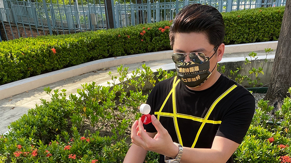 You walk up to a bunch of spectators and BORROW their plastic drink bottles. Unscrewing the bottle caps, you explain that you will balance one of the caps on top of the other.