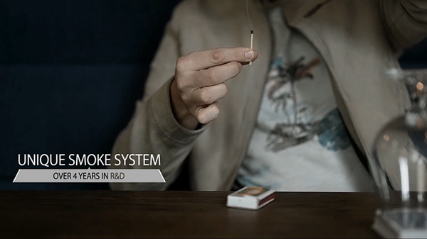After your favorite card magic you take a glass (may be borrowed) and place it upside down on your deck of cards. You light a match and with a snap of your fingers the flame of the match is magically "blown" out -you catch some of the smoke and blow it towards the glass... visually and magically mystic smoke starts to materialize out of nowhere, filling the whole glass in just seconds with thick, white smoke. This looks simply astonishing.