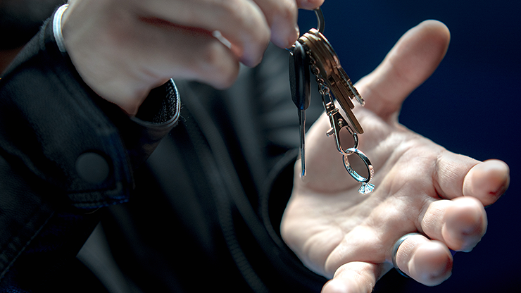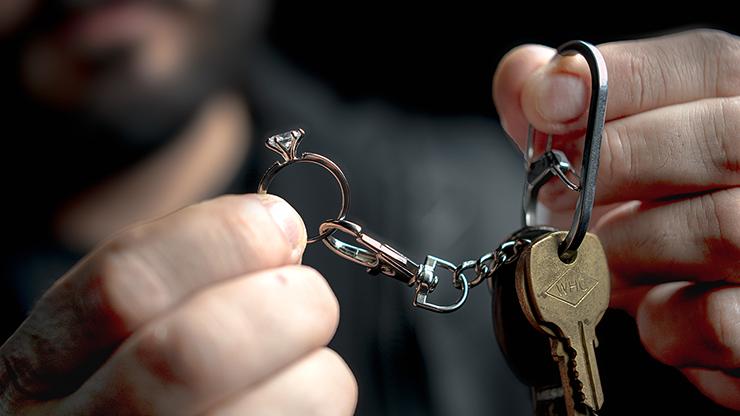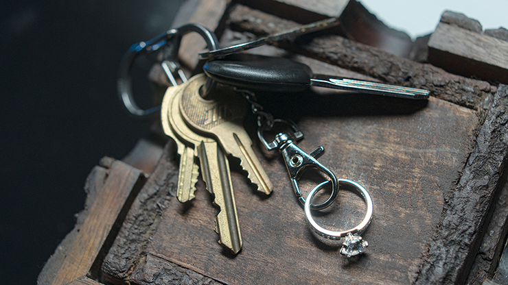 Now get this: you make the ring vanish and reappear instantly on a short chain connected to the keys your spectator's holding in their own hands. Your audience's jaws will drop, and their eyes will pop!